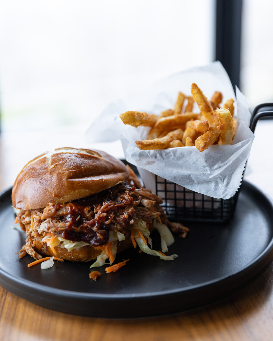 BBQ pulled pork sandwich – slow cooked barbecue pulled pork, topped with crispy onions and house made coleslaw